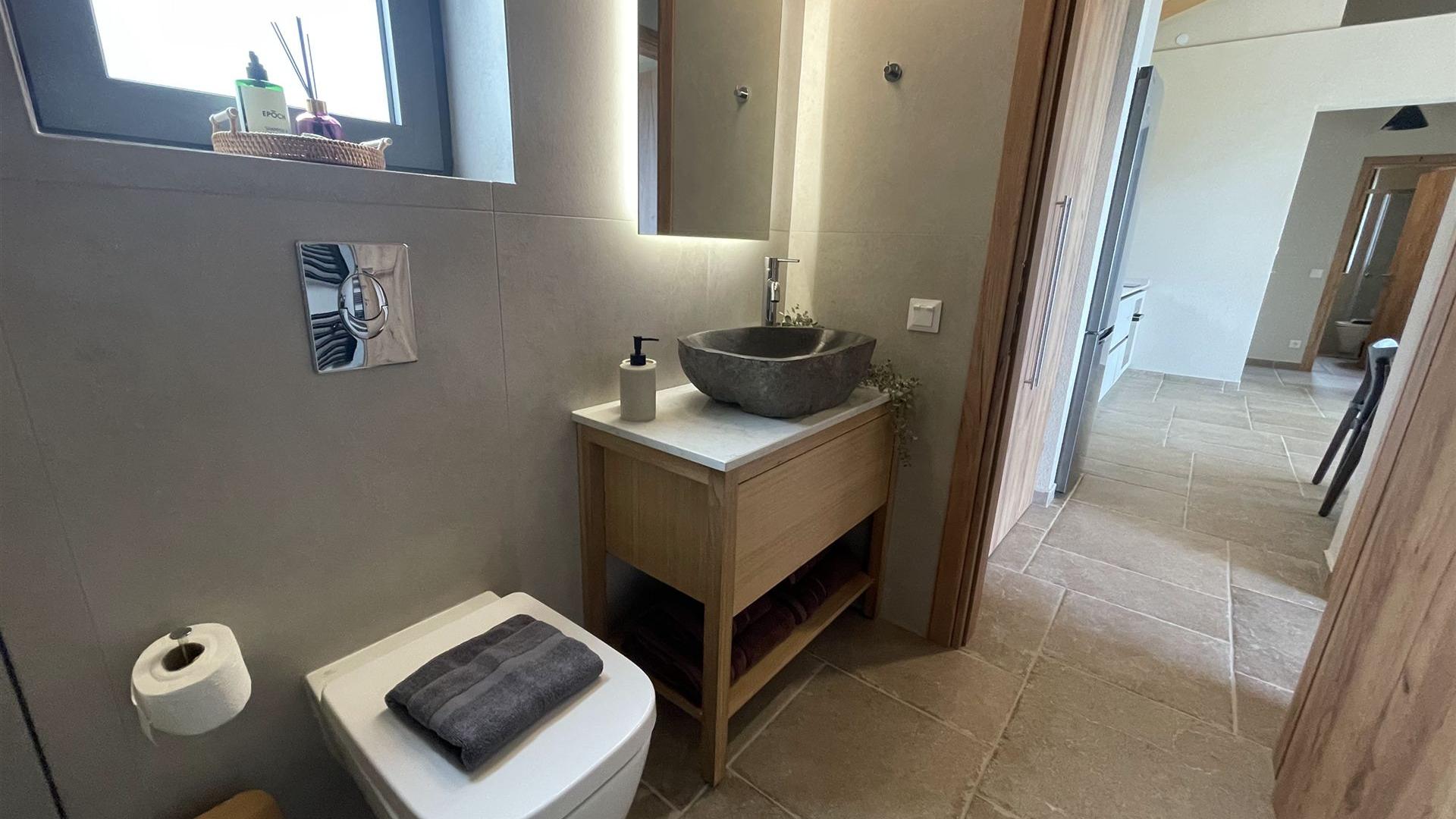 The villa is very well equipped. There is WiFi with two access points (indoor and outdoor). There is also a LAN cable connection in both bedrooms. The villa is connected via Starlink satellite and is therefore independent of the local internet provider. Starlink reaches around 70-100 Mbit/s.